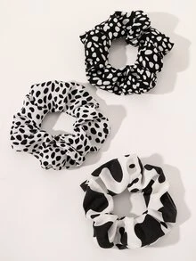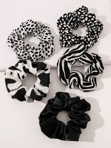 5 pièces Chouchous à pois pour une sortie quotidienne décontractée, élégants chouchous, élastiques à cheveux, accessoires de tête à imprimé animal pour queue de cheval