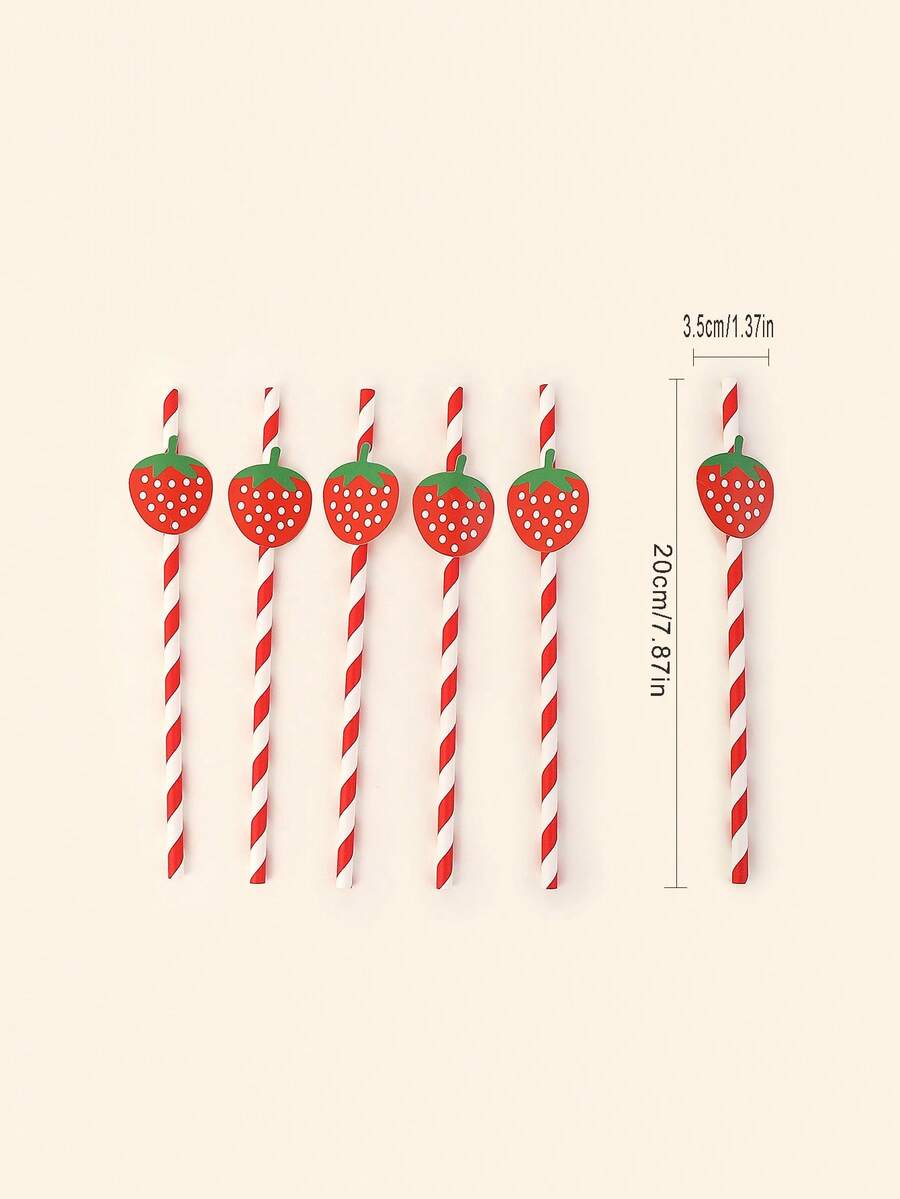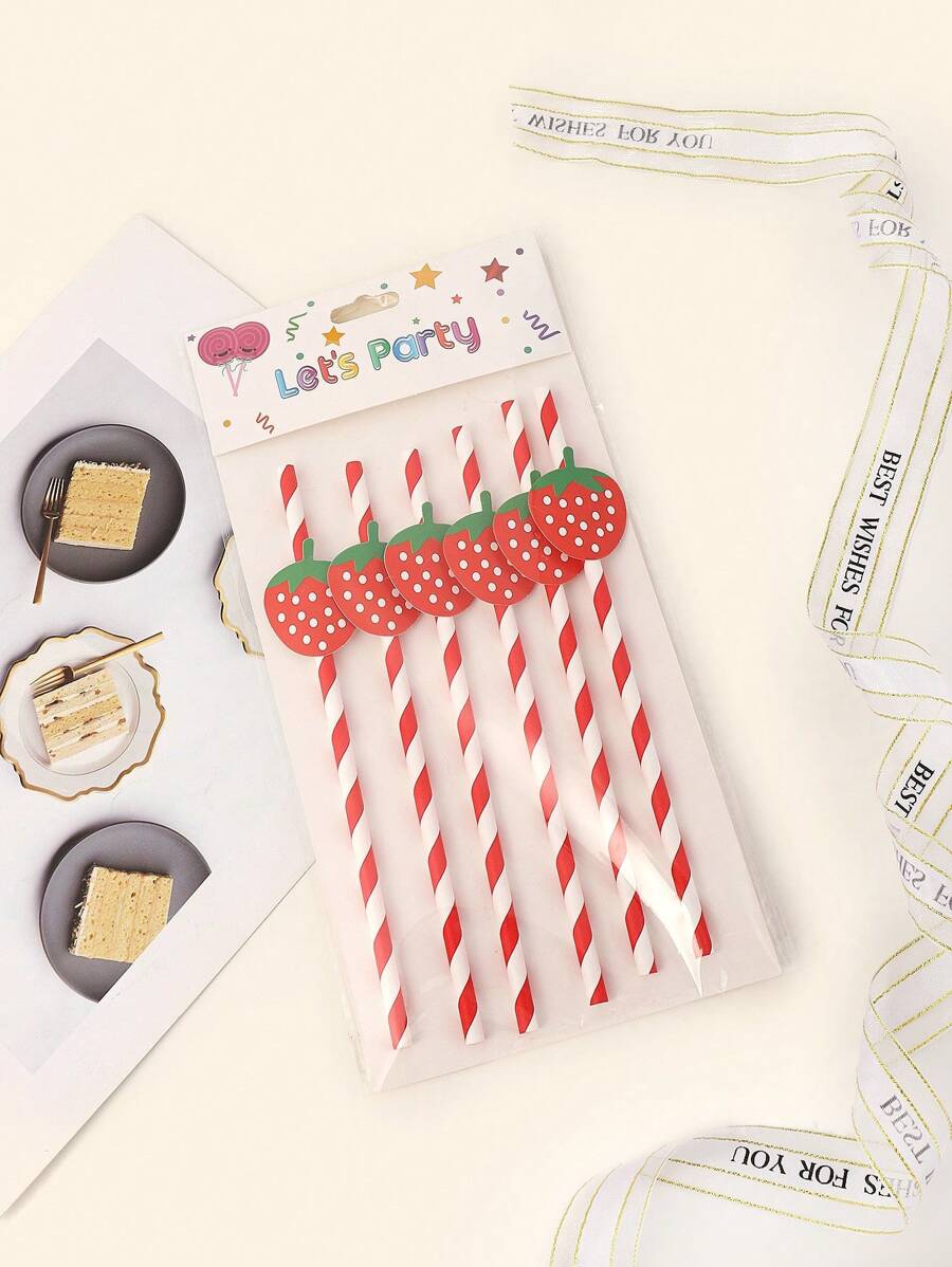 6 pièces Paille de papier fraise jetable pour la fête