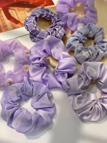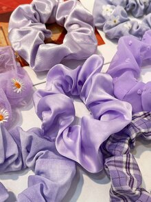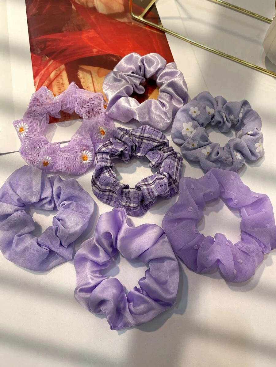 7 pièces Élastiques à cheveux motif fleurs violettes romantiques et carreaux, accessoires cheveux, chouchous pour le carnaval, Mardi Gras