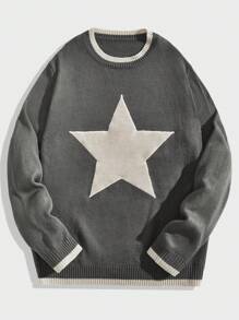 Academia Pull Pour Homme Avec Motif D'étoile Et Design De Couleur Contrastante