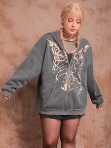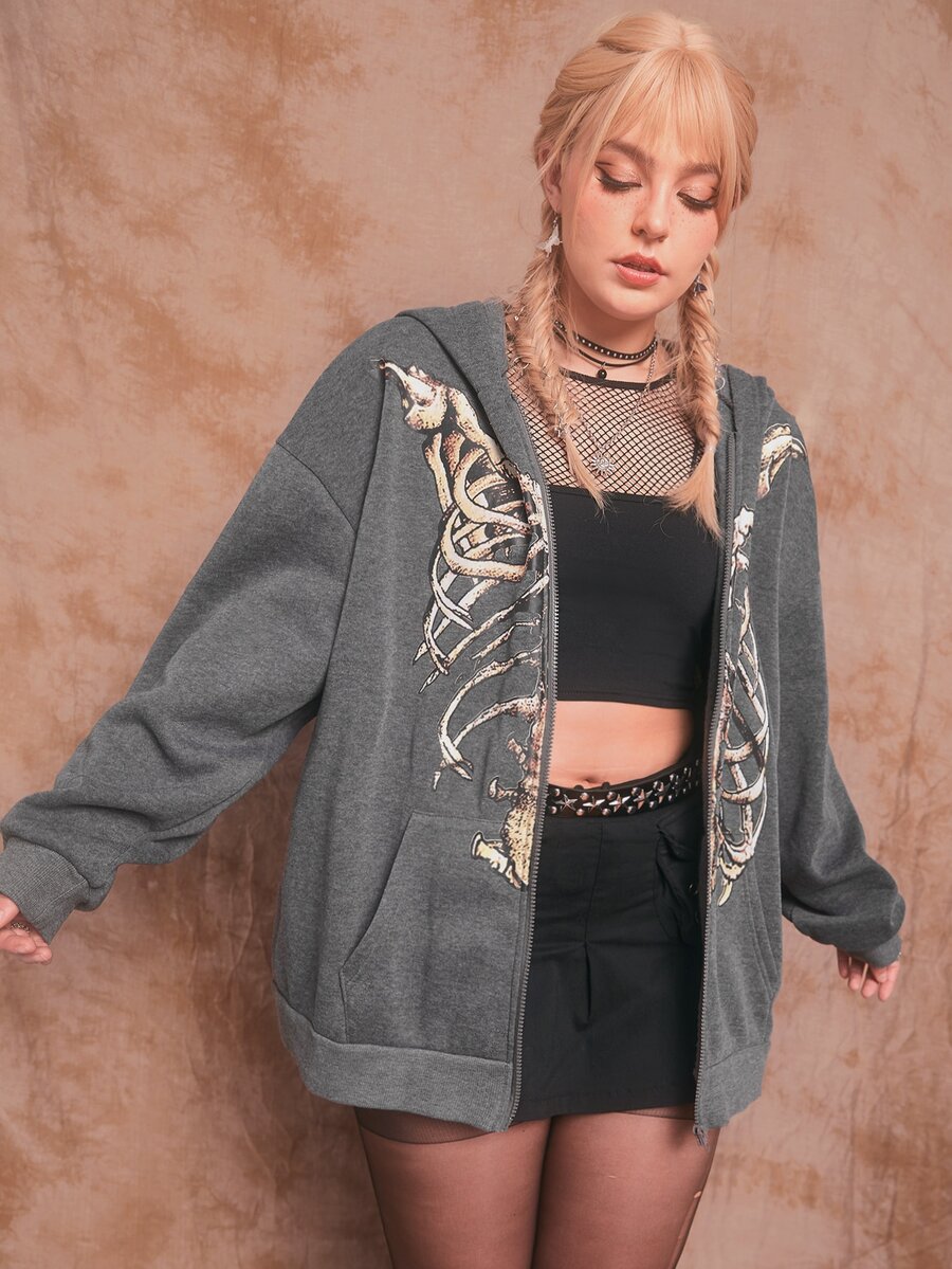 Academia Sweat-shirt à capuche à imprimé squelette zippé à doublure thermique