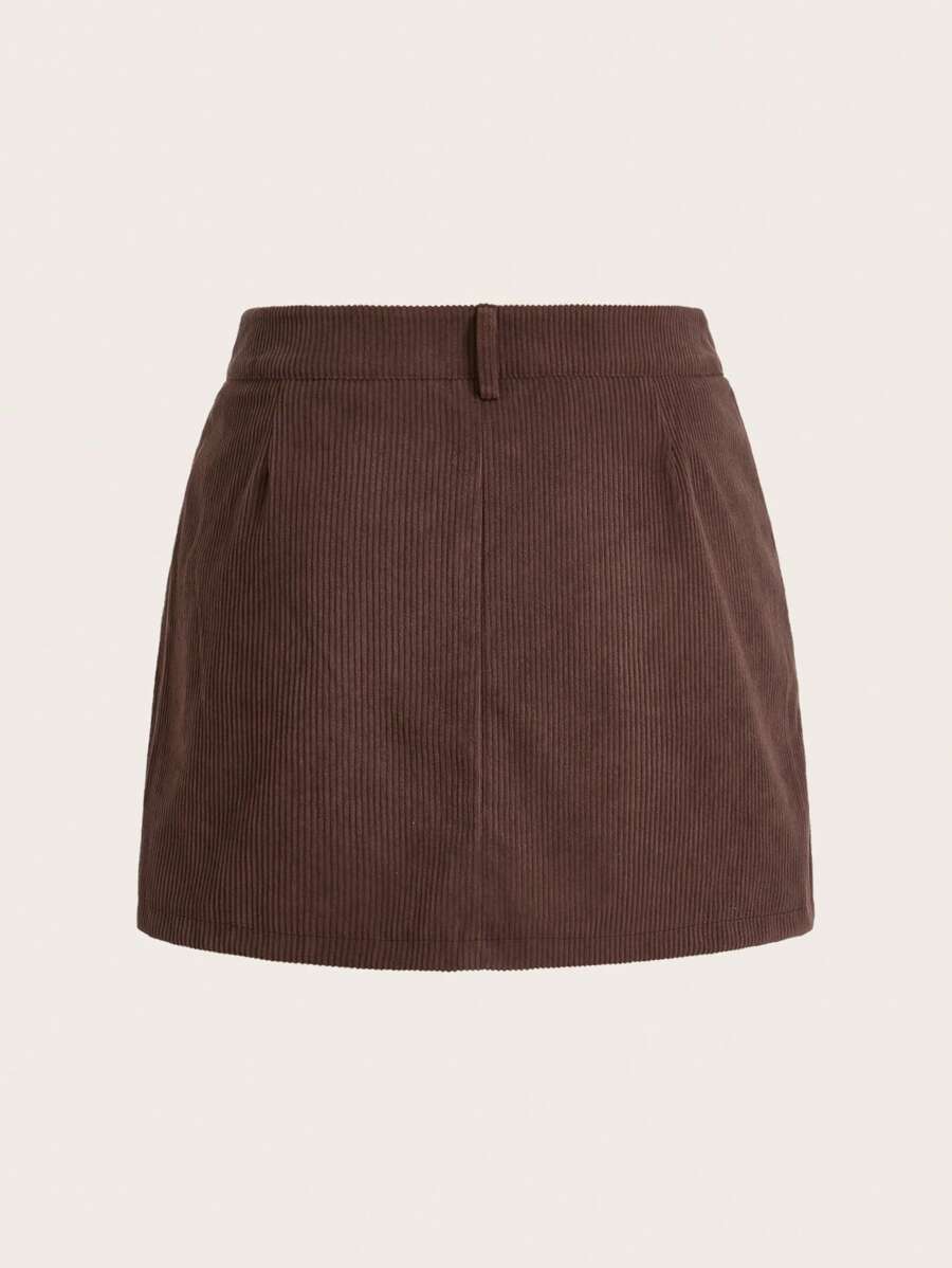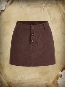 Academia Jupe Unicolore En Velours Côtelé À Bouton