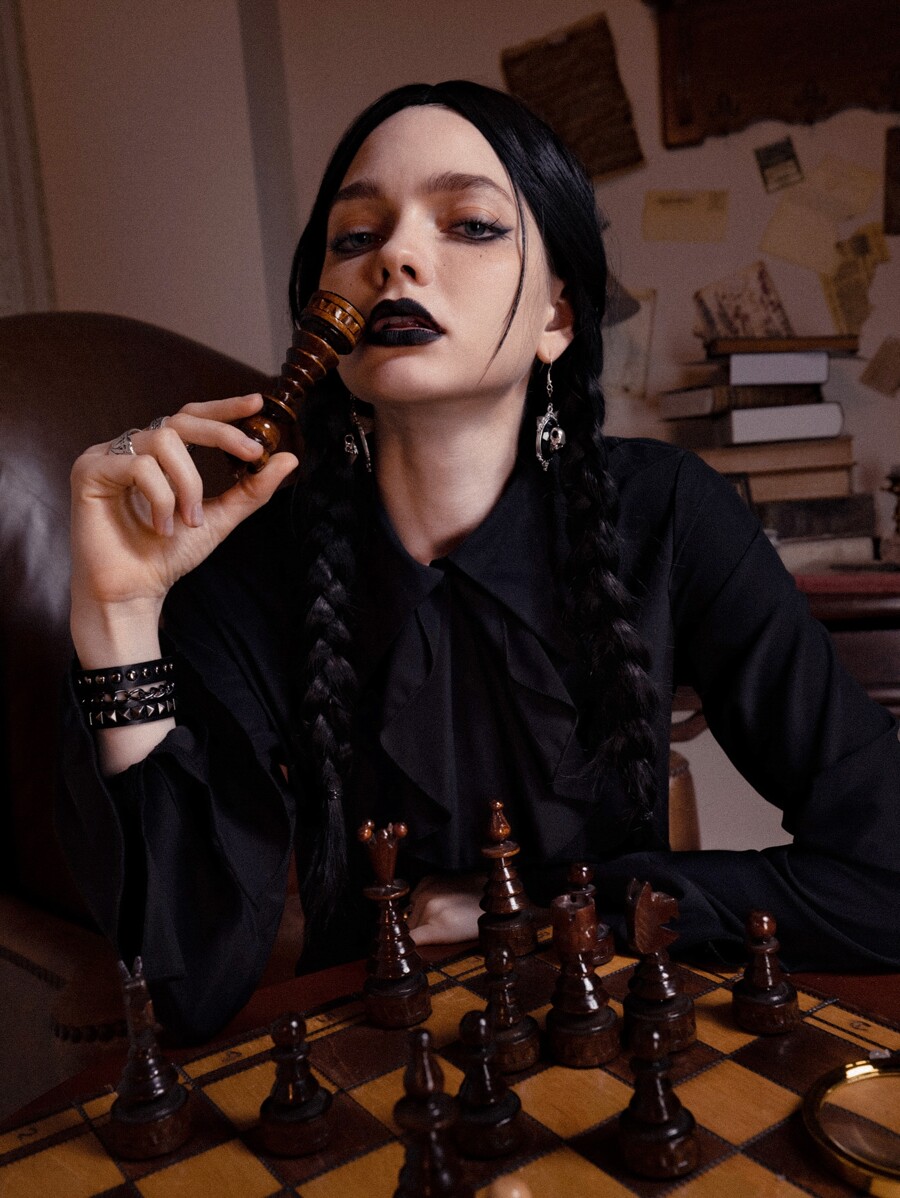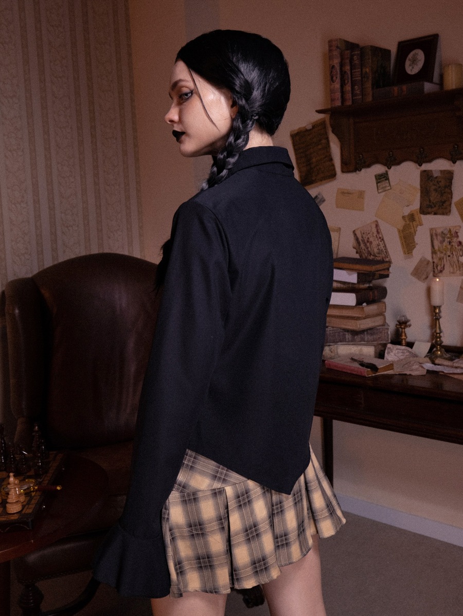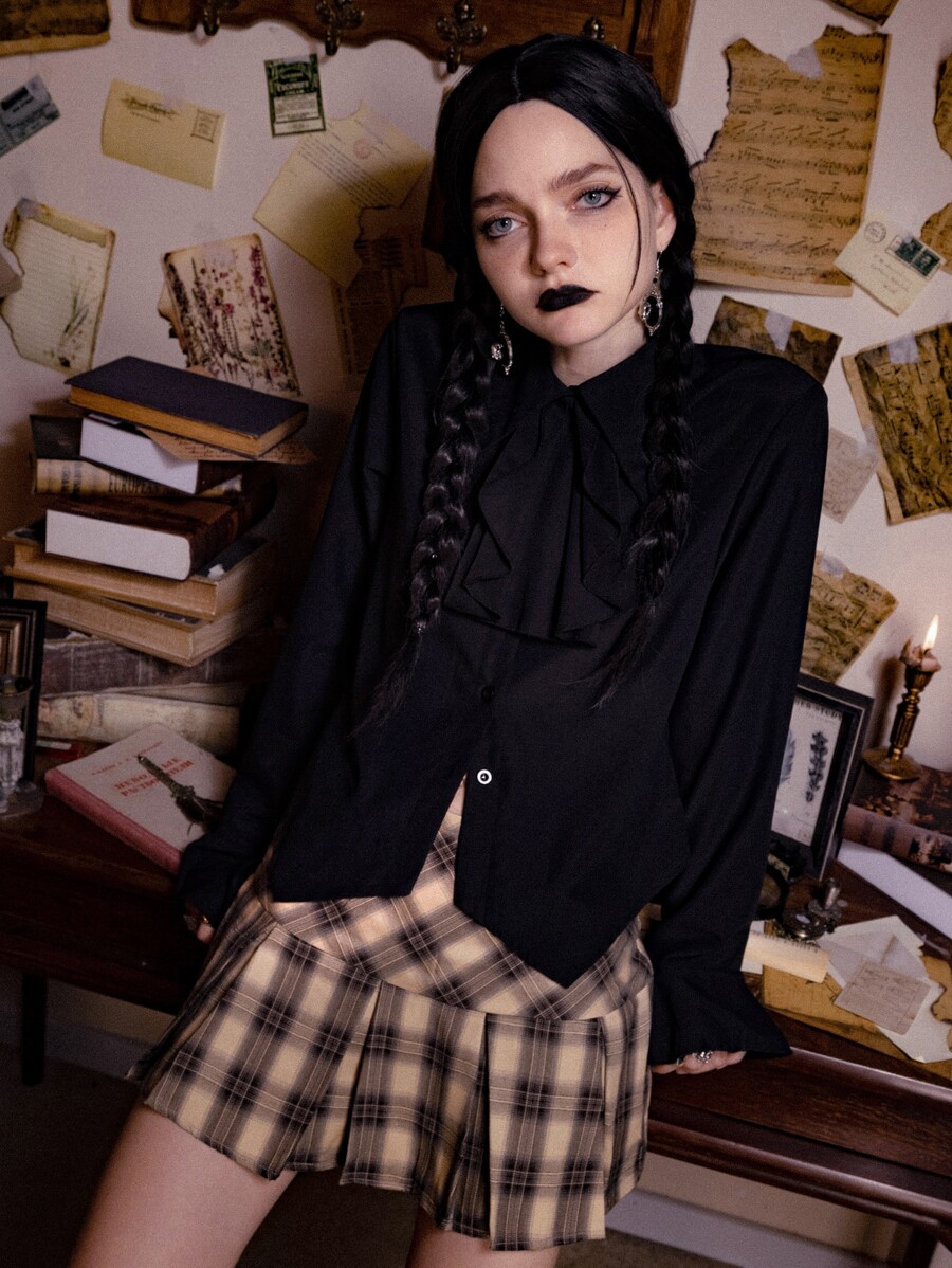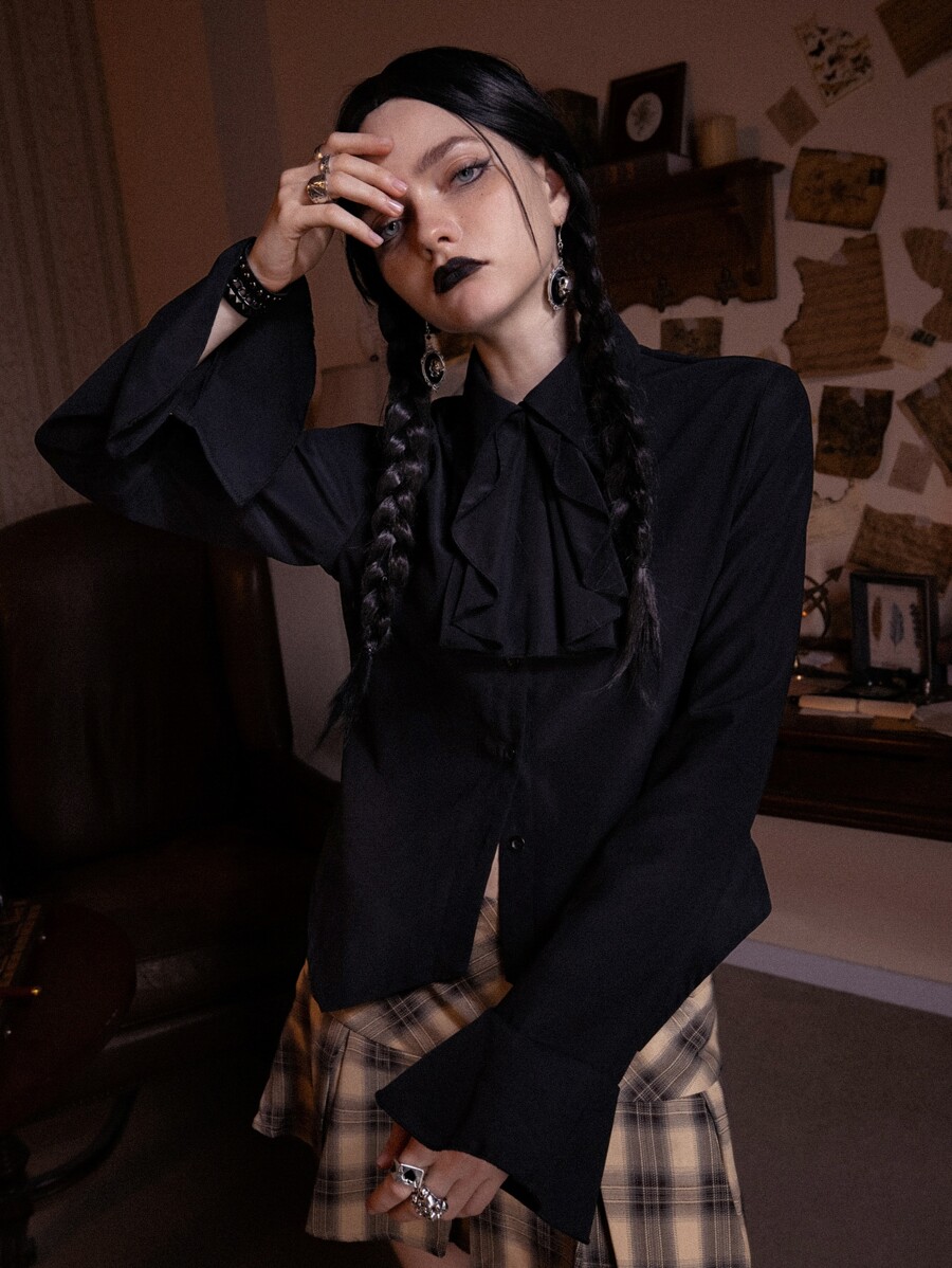 Academia Dark Academia Chemise unicolore à volants à bouton