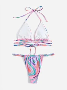 Bikini Dos Nu Croisé Imprimé Sur Lensemble