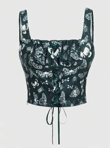 Fairycore Top Sans Manches Partout Imprimé Papillon À Lacets