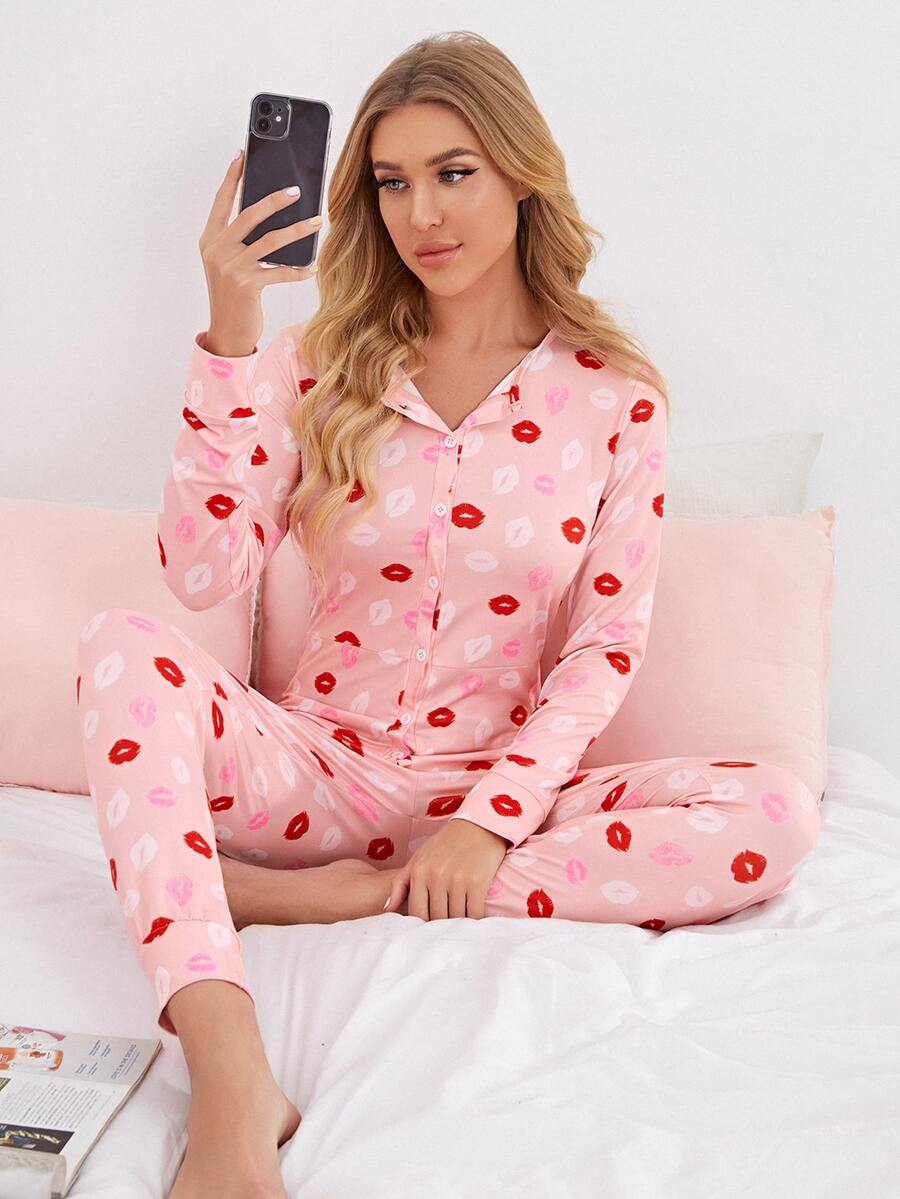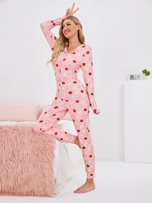 Combinaison de pyjama avec imprimé lèvre