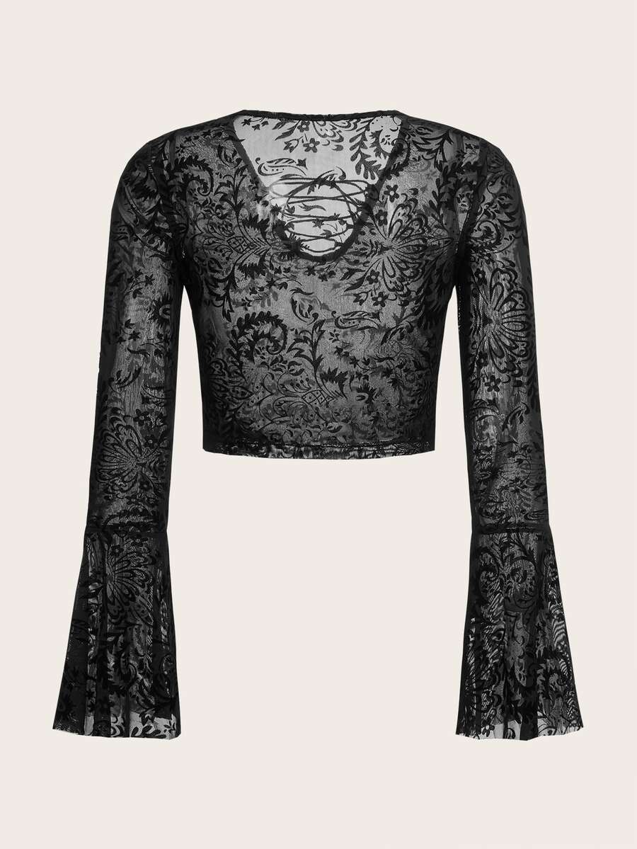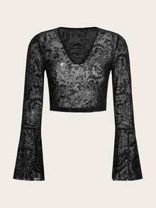 Top à imprimé manches évasées en tulle