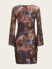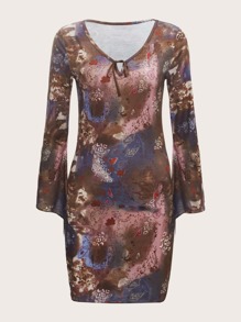 Robe à imprimé à nœud manches évasées
