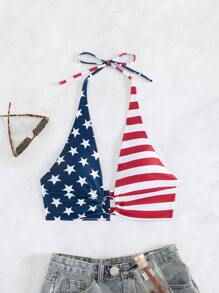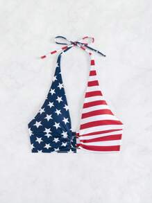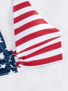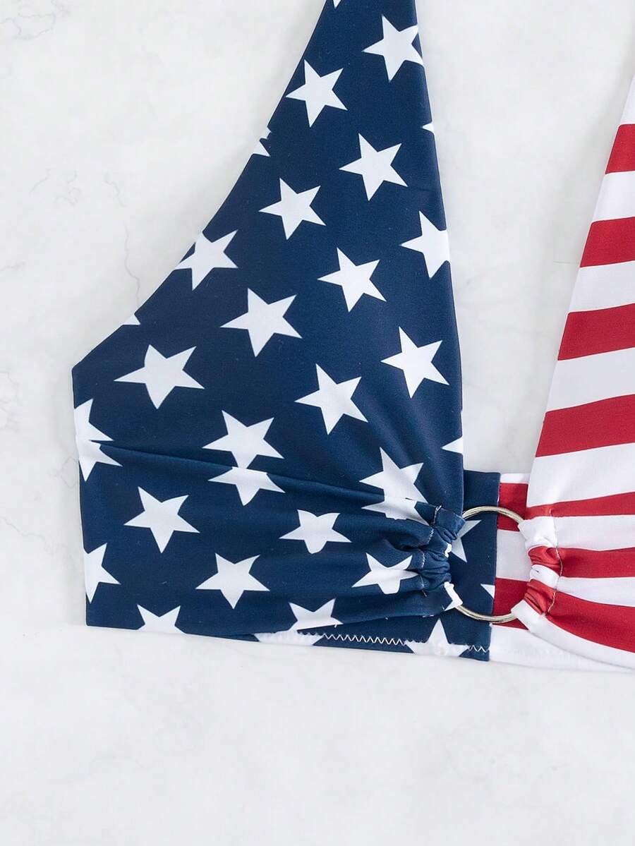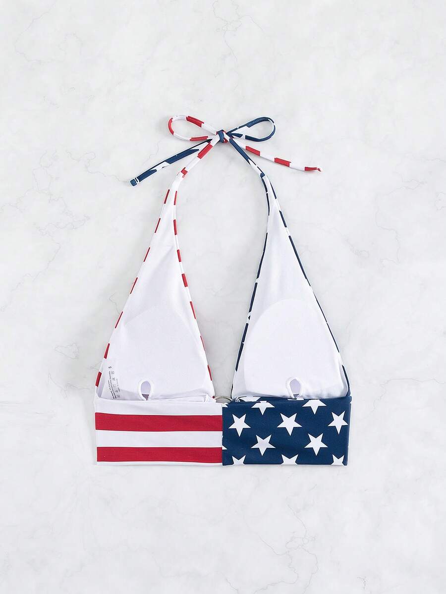 Top de bikini à liens en forme d'anneau avec imprimé drapeau américain USA, pour le 4 juillet