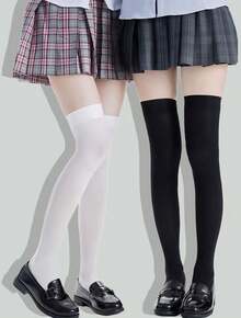 Anime 1 paire de chaussettes hautes noires très élastiques pour femmes