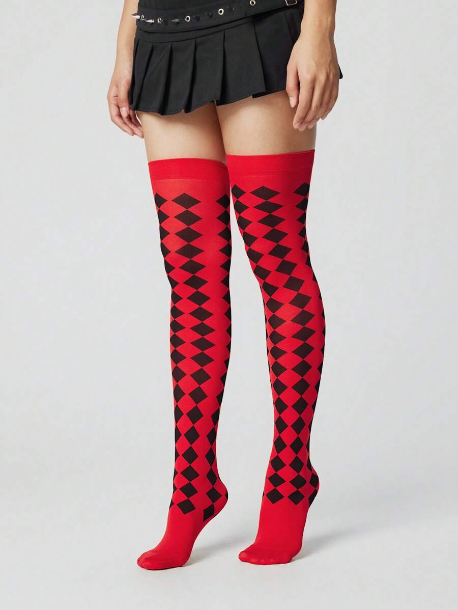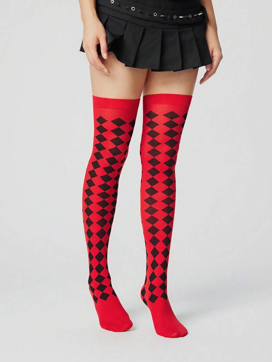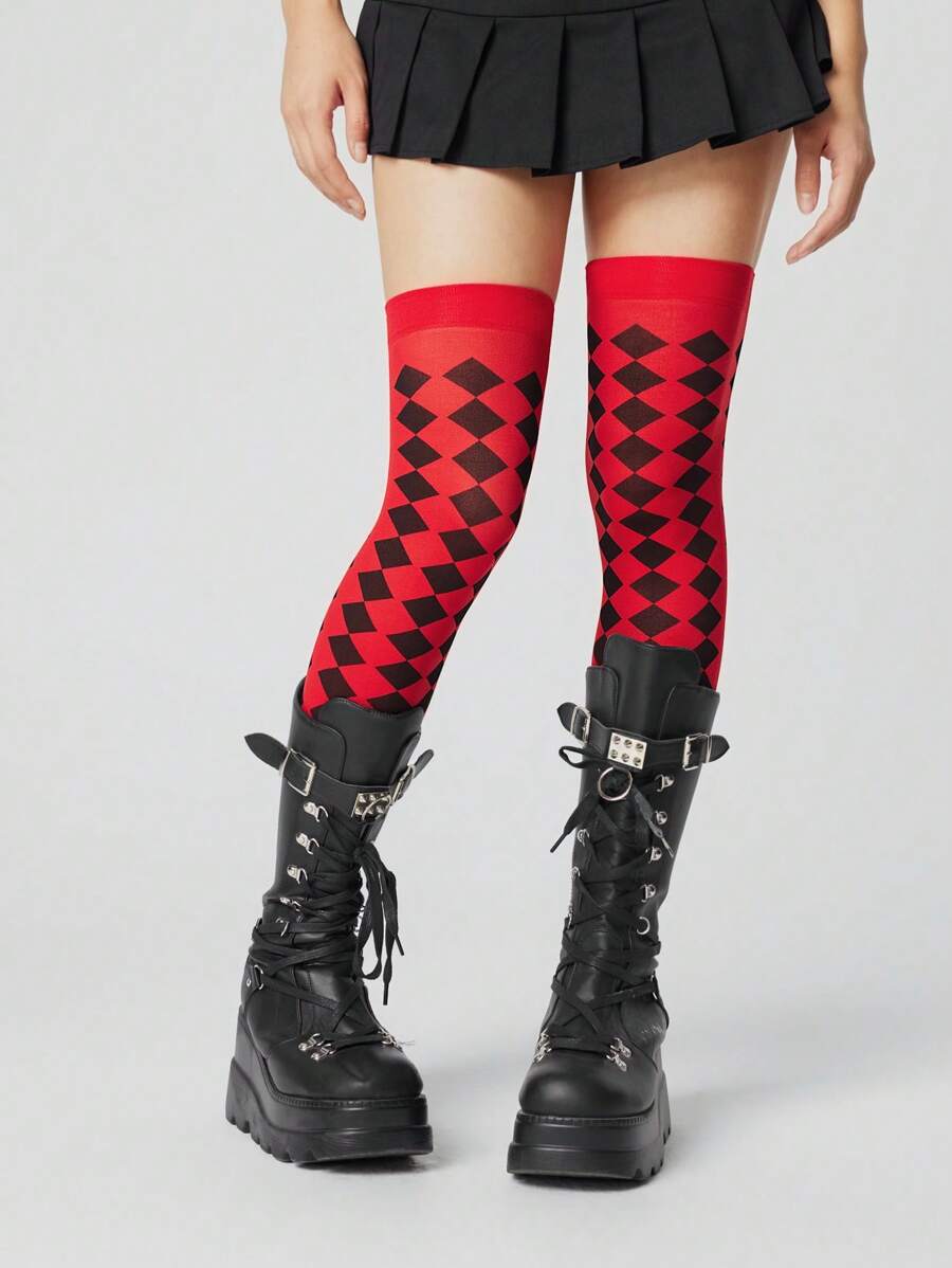 Anime 1 paire de chaussettes hautes pour femmes avec motif imprimé foncé, convient pour toutes les saisons