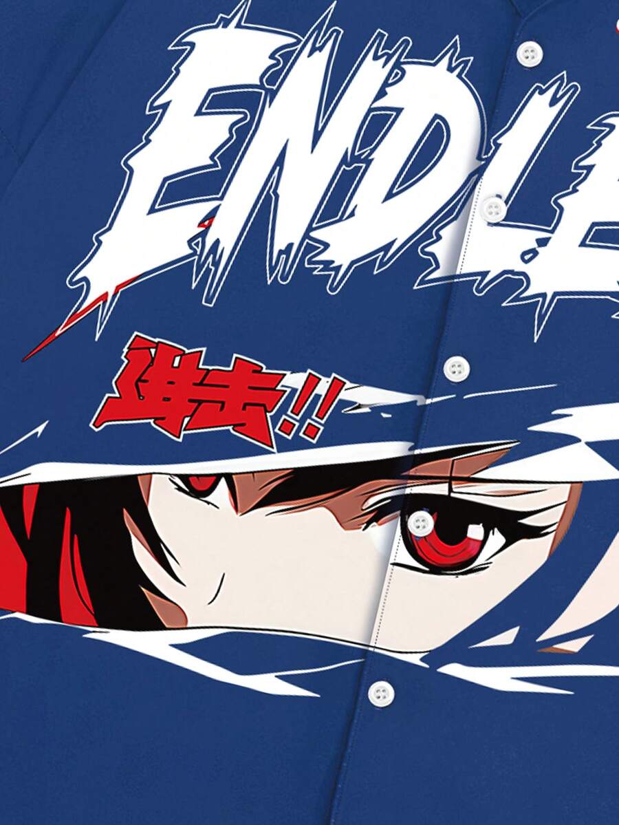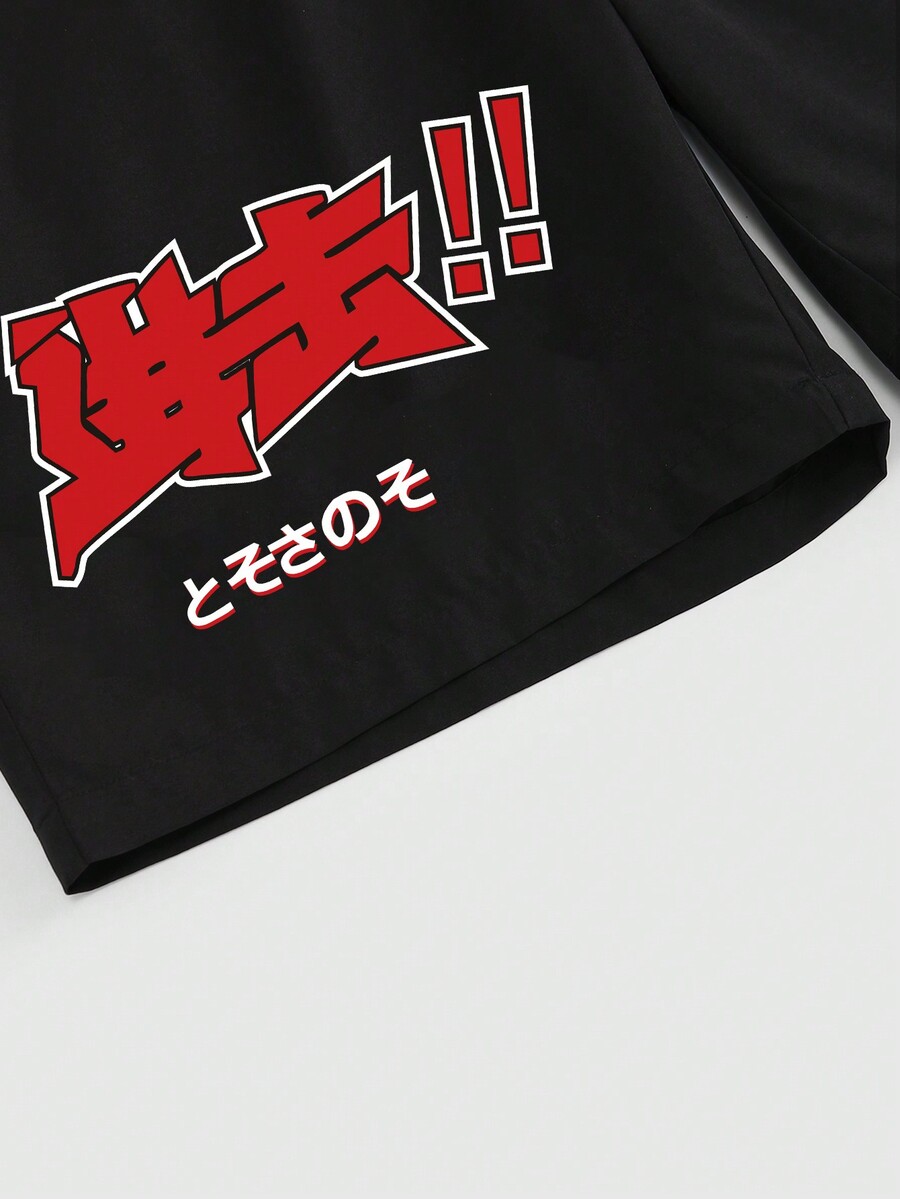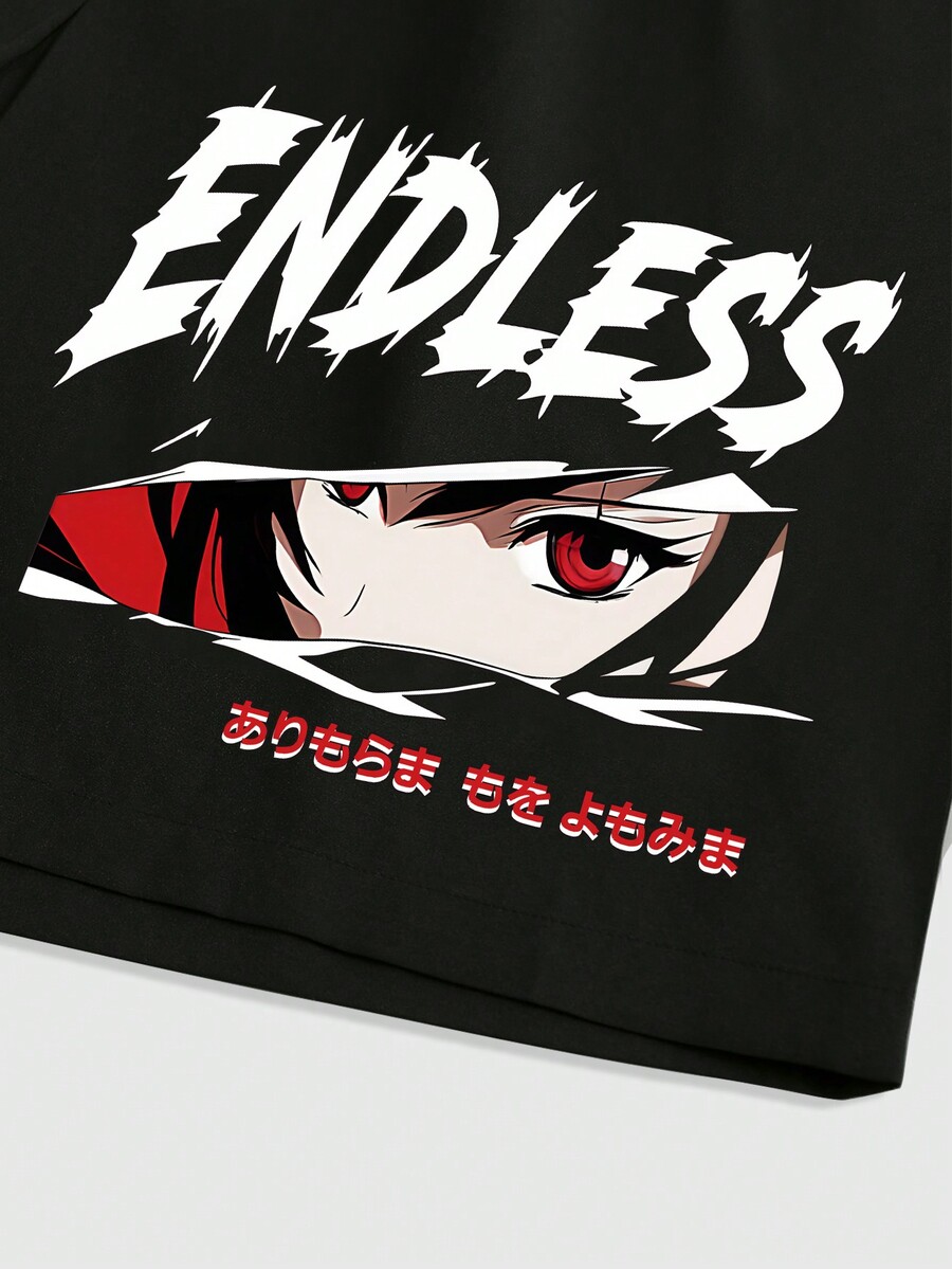 Anime Ensemble de chemise et de short décontracté imprimé pour hommes 2 pièces, adapté pour le printemps et l'été