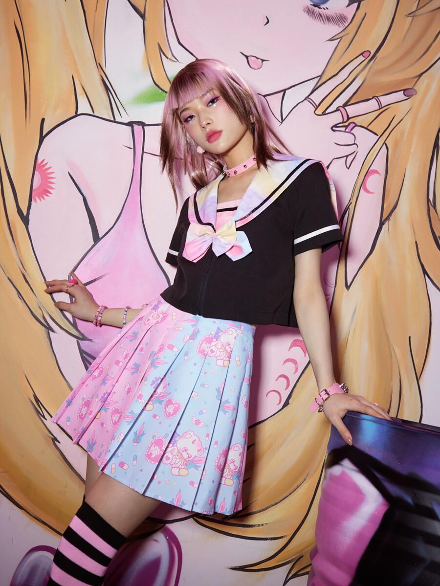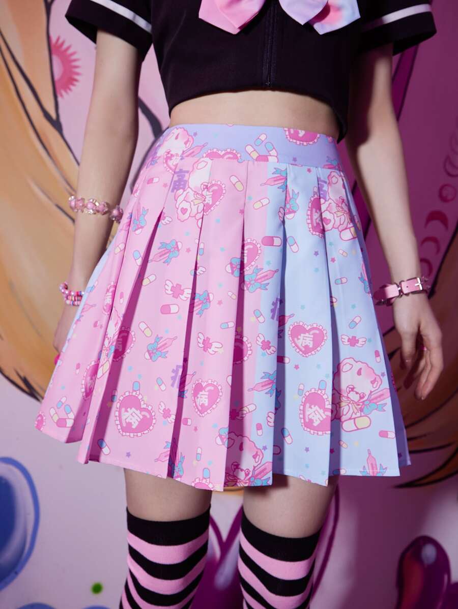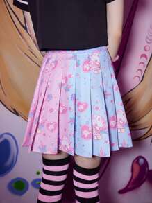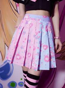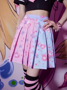 Anime Jupe plissée dessin animé à blocs de couleurs