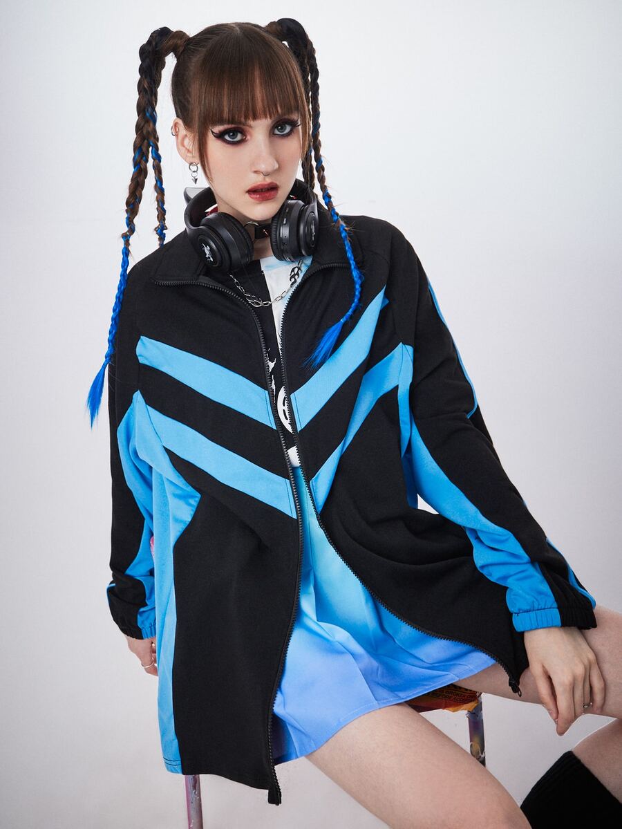 Anime Sweat-shirts pour femmes Fermeture éclair Casual Chevron Blocs de couleur