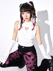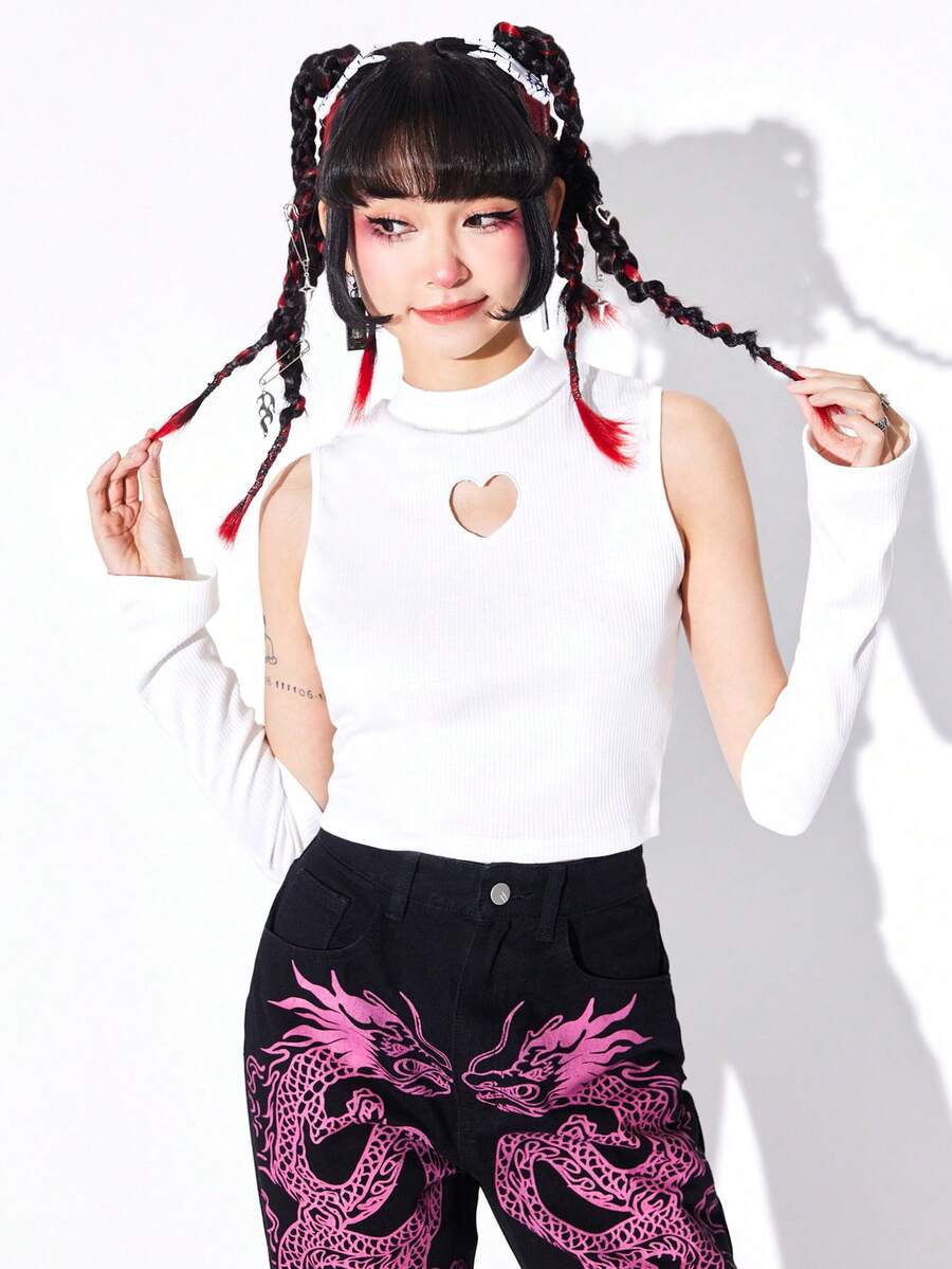 J-Fashion 1 paire Top sans manches court découpé cœur avec manchettes