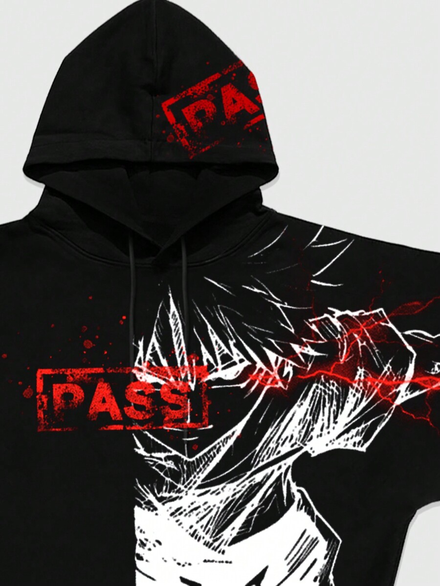 sweat-shirt à capuche pour hommes avec portrait anime et imprimé lettre, convient pour l'automne/l'hiver