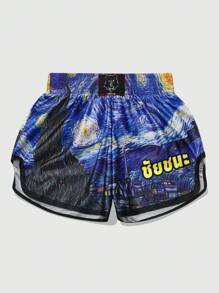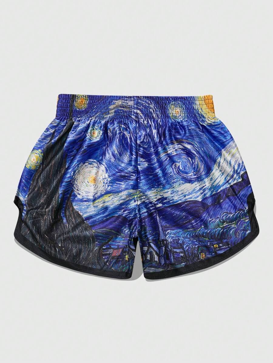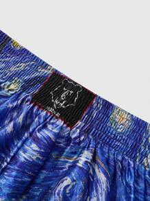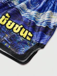 Street Life Shorts de boxe ample à taille élastique avec imprimé peinture pour hommes