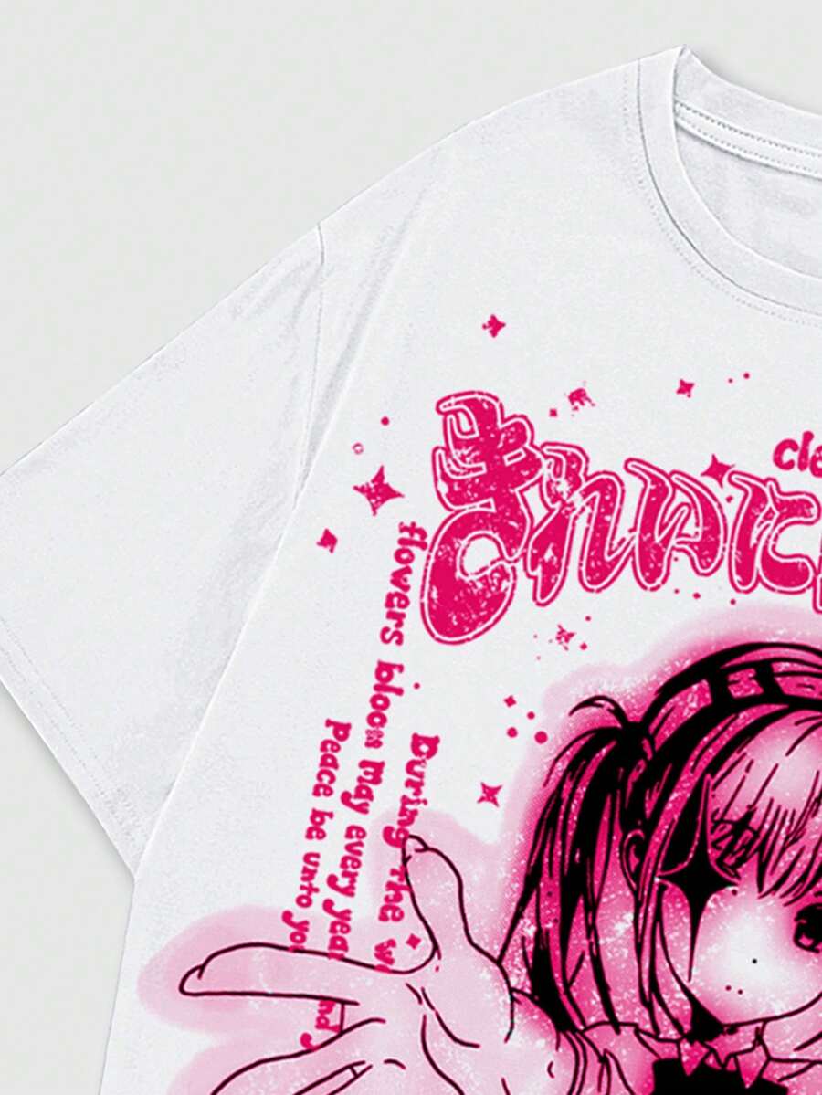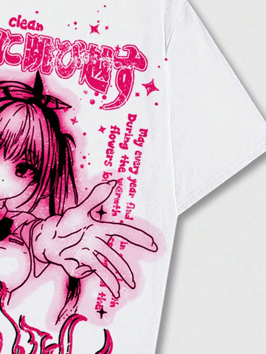 T-shirt à manches courtes pour homme avec l'impression de personnage d'anime et de slogan, convient pour le port quotidien au printemps et en été, école