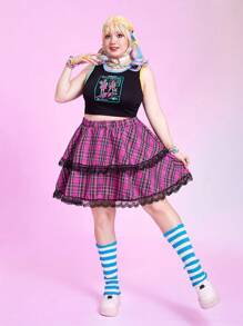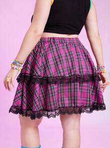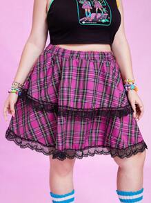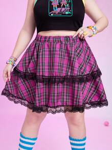 Anime Jupe à carreaux ourlet en dentelle