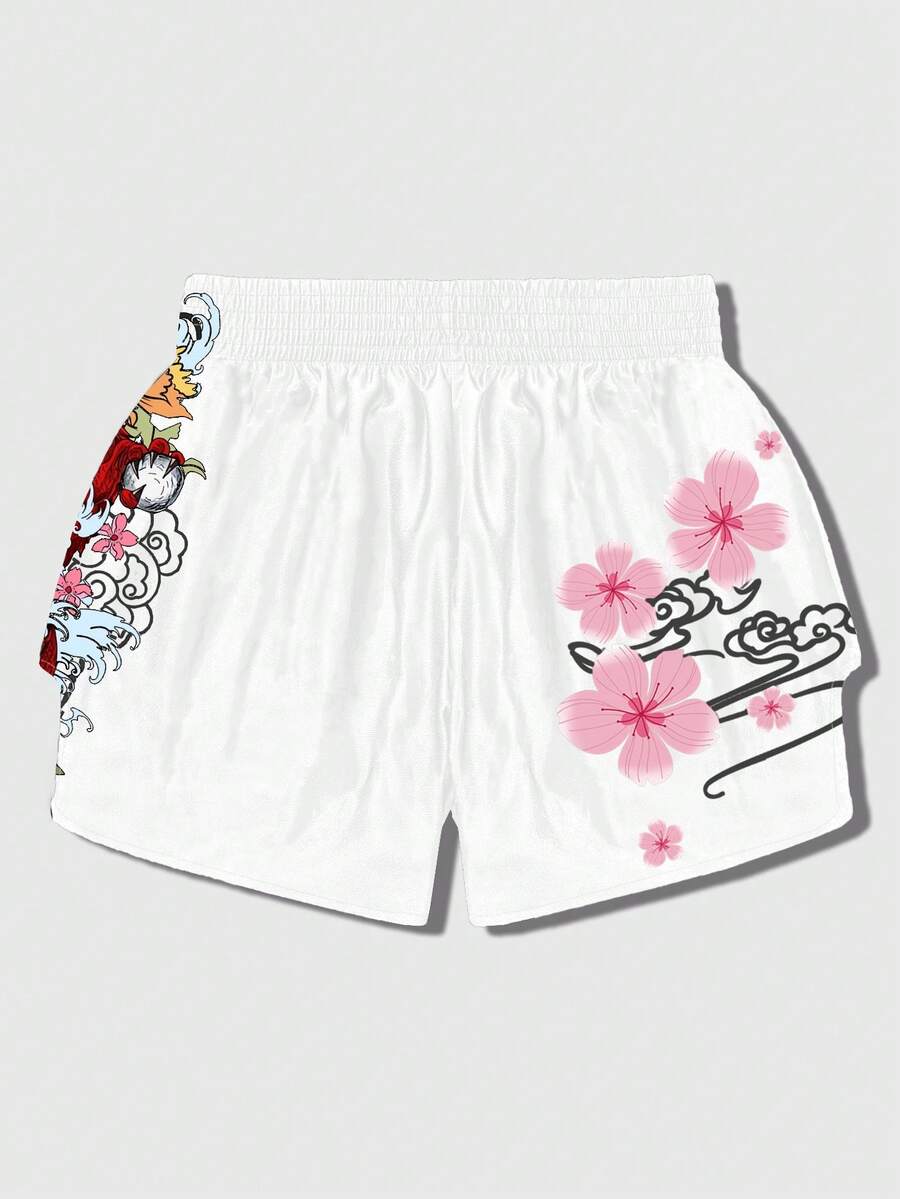 Anime Short de boxe pour hommes avec imprimé dragon et floral