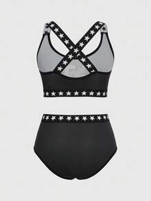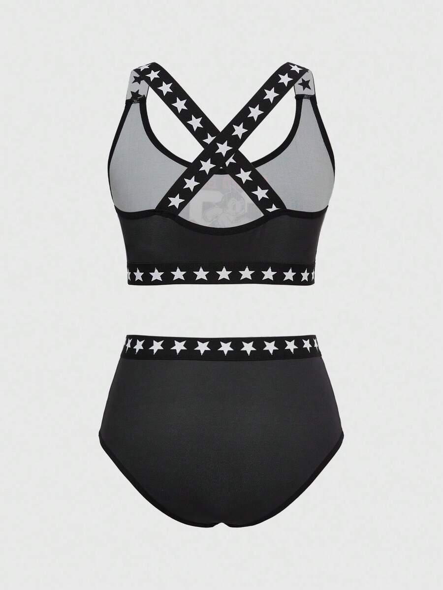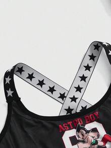 Astro Boy X ROMWE Ensemble de soutien-gorge de sport sans fil et culotte avec motif de bandes étoilées pour femmes