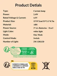 BASIC LIVING 1pc Guirlandes lumineuses 120 LED 2m