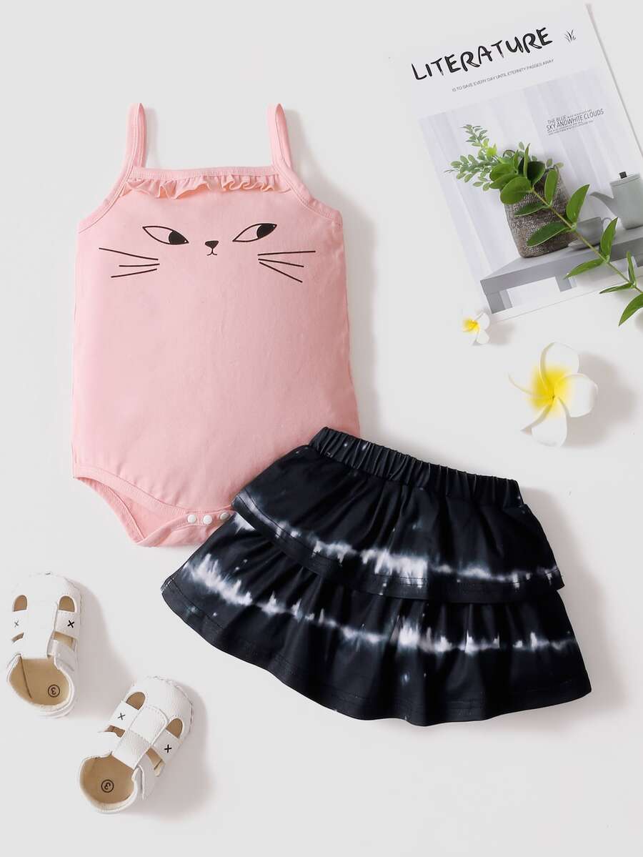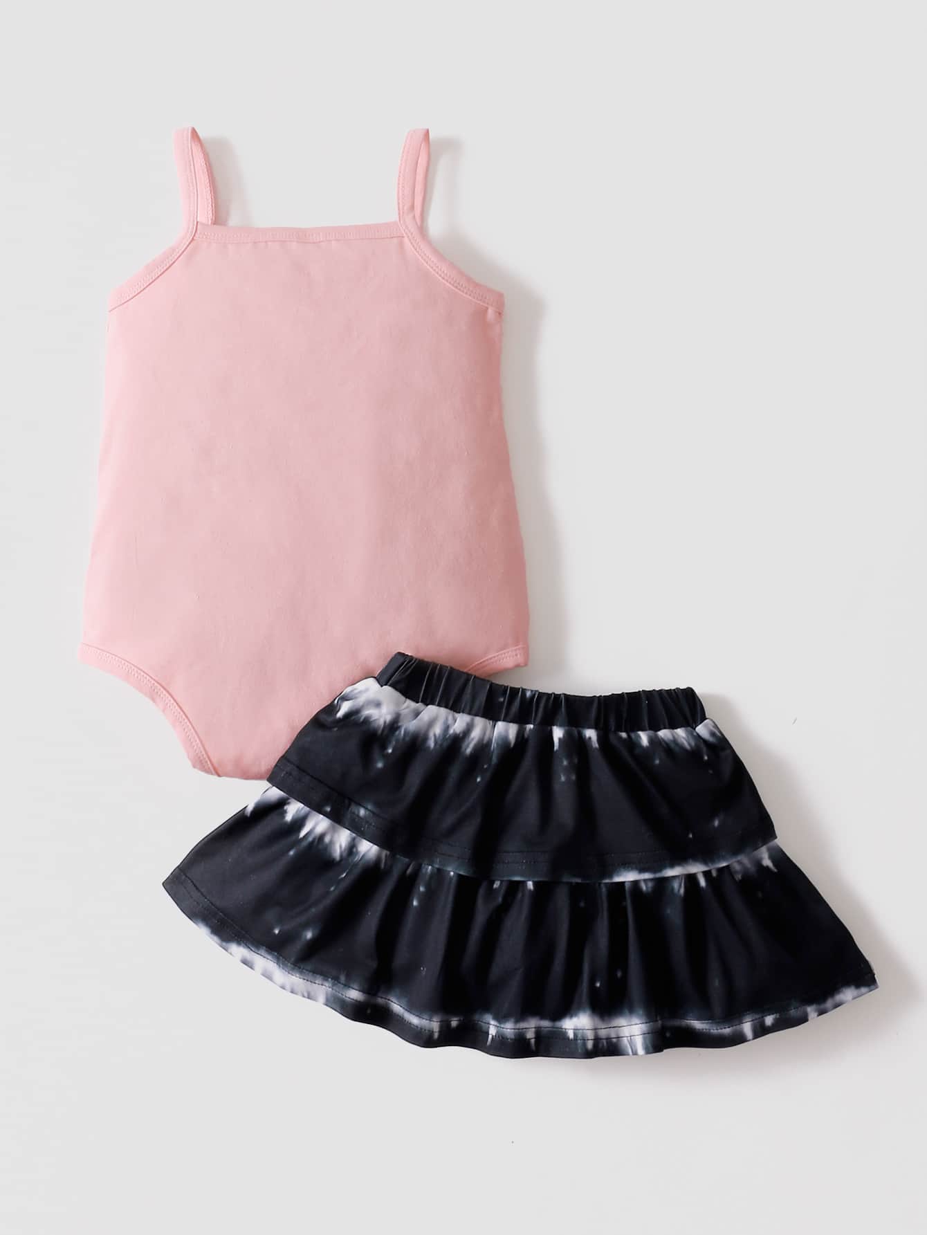 Bébé fille Body à fines brides dessin animé & Jupe tie dye