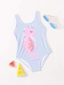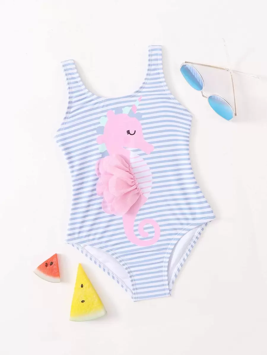 Bébé fille Maillot de bain une pièce hippocampe à rayures