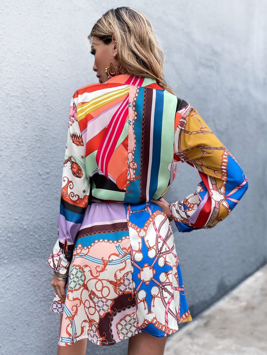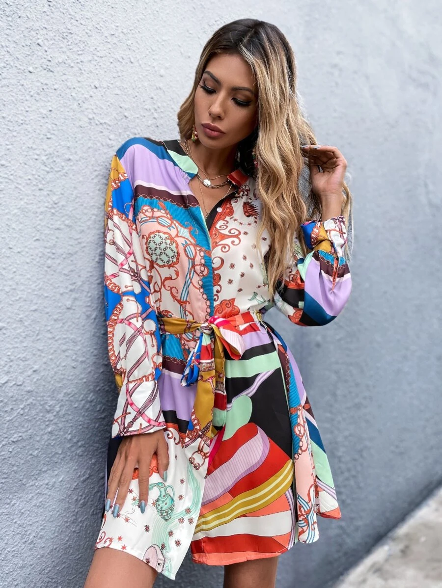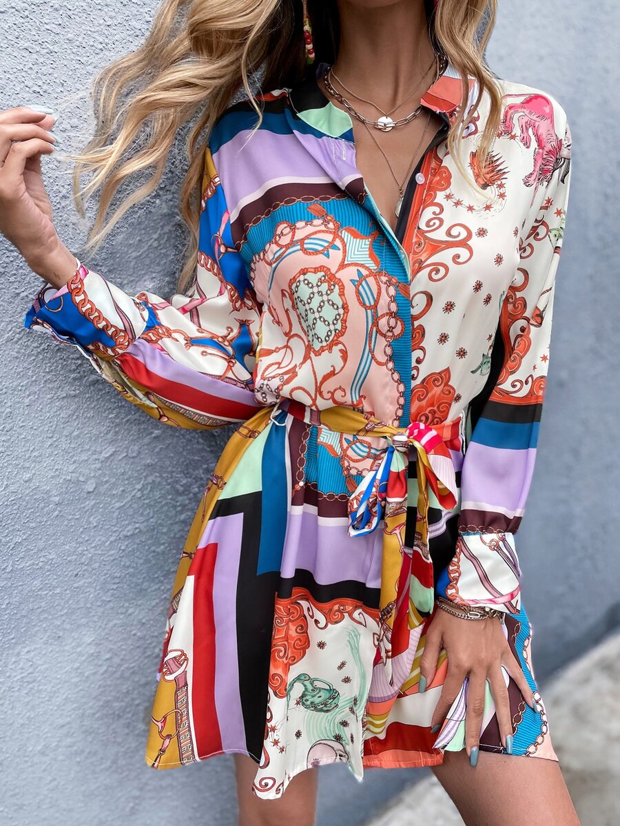 Robe chemise ceinturée avec imprimé baroque