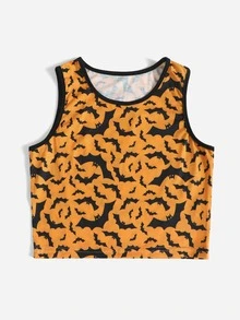 Top sans manches court à imprimé chauve-souris