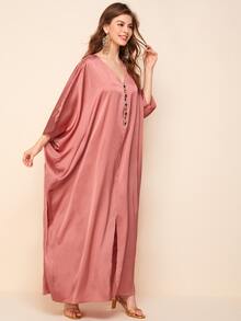 Robe cocon en satin à ourlet fendu avec strass et manches chauve-souris