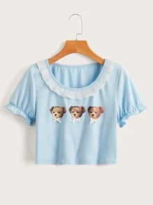 T-shirt à imprimé ours à plis