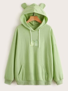 Beereckless Sweat-shirt à capuche oreille 3D grenouille de dessin animé à poche à cordon