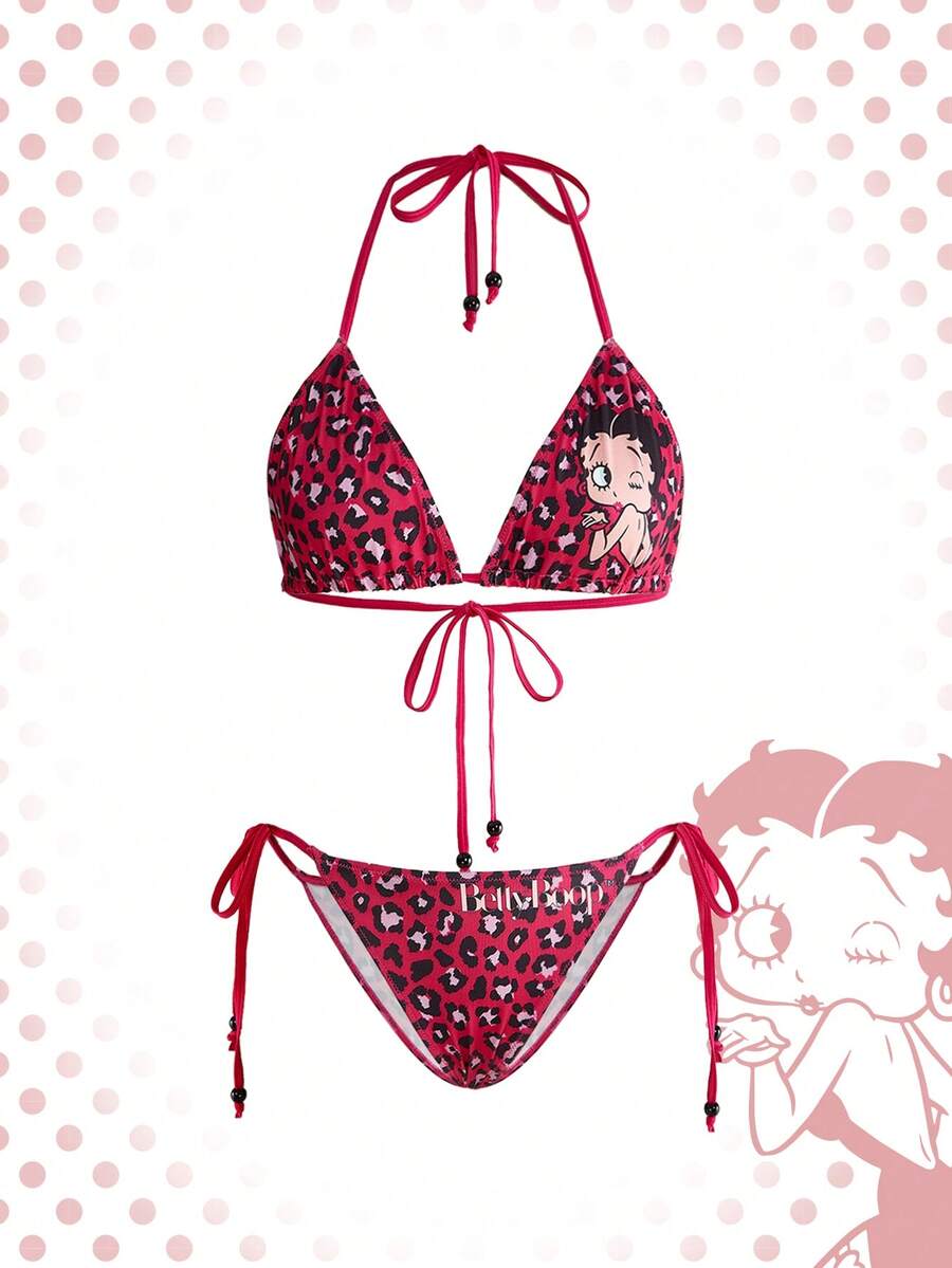 Betty Boop | ROMWE Ensemble de lingerie soutien-gorge brassière et culotte imprimé léopard
