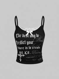 J-Fashion Débardeur femme style Y2K avec dentelle contrastée et broderie graphique
