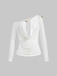 ROMWE Avant Blouse femme à col bénitier, couleur unie, manches longues, style avec découpes