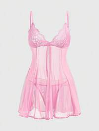 J-Fashion Ensemble robe transparente sexy avec patchwork de dentelle et de maille, style avant-gardiste Y2K avec nœud