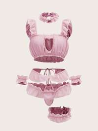 Kawaii Ensemble de lingerie sexy pour femmes avec soutien-gorge à armatures avec garniture en dentelle et culotte à entre-jambes ouvert