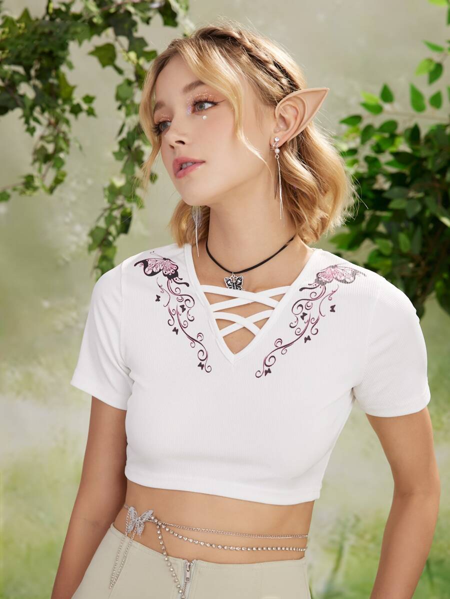 Fairycore T-shirt court papillon croisé