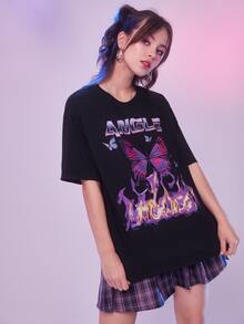 T-shirt papillon feu et lettre