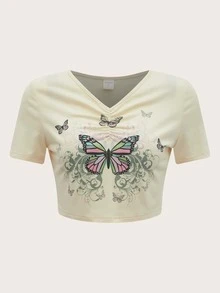 T-shirt court papillon à ruché