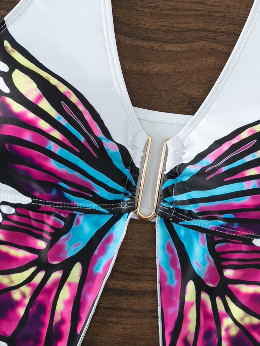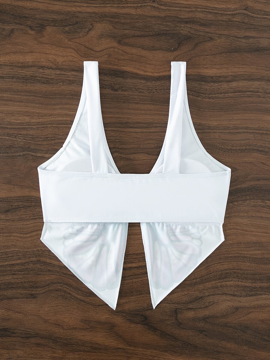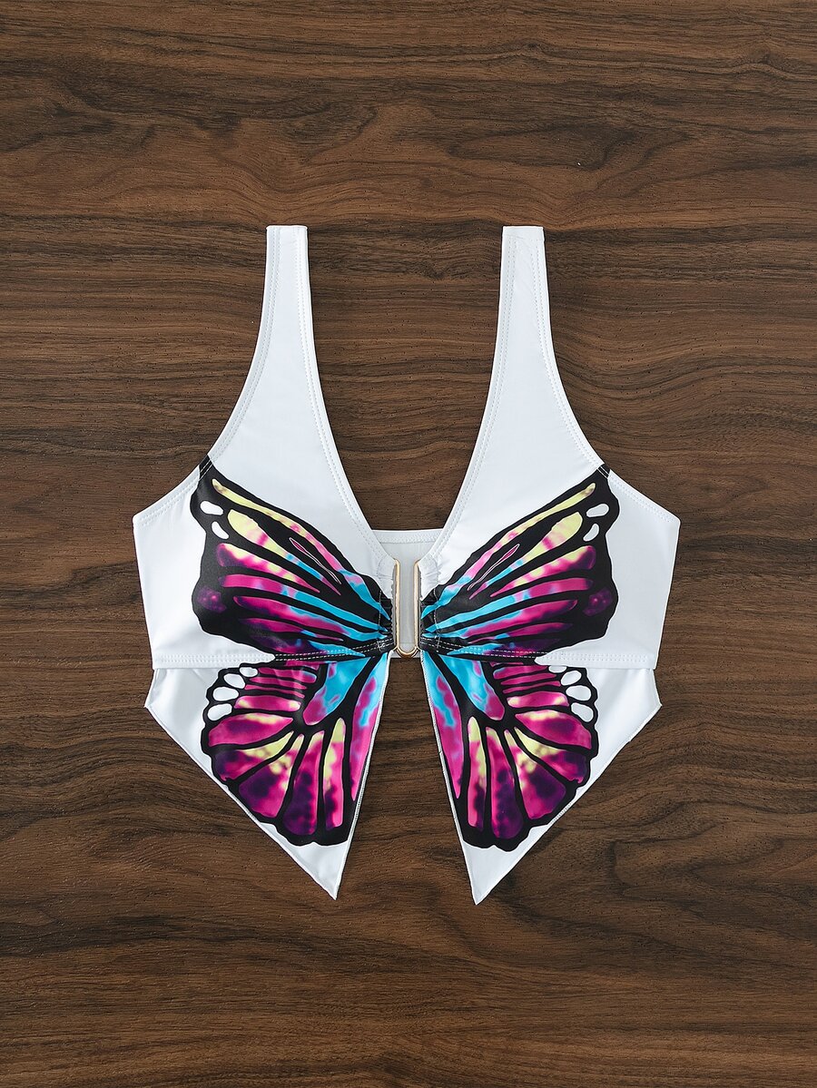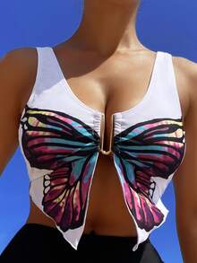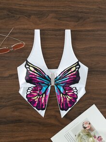 Top sans manches à imprimé papillon asymétrique