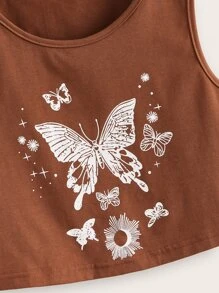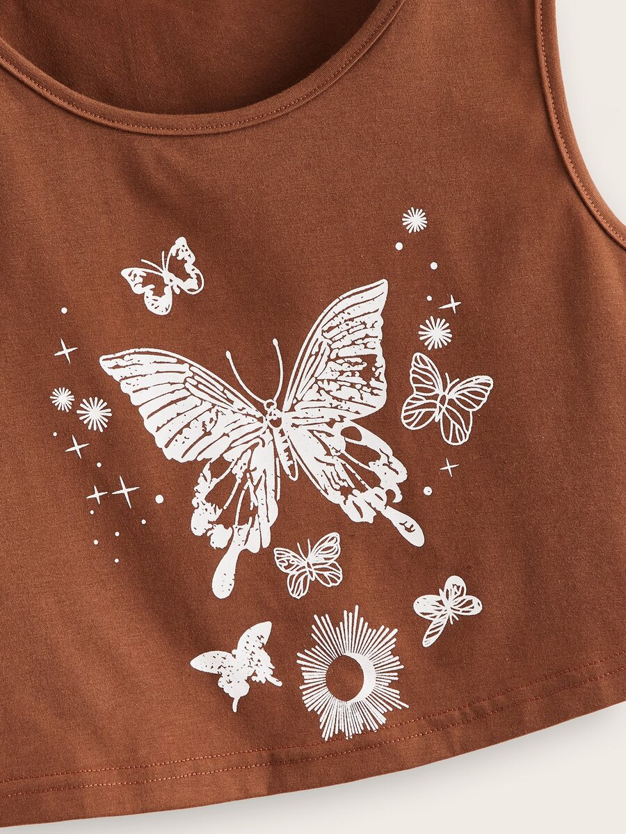 Top sans manches court à imprimé papillon
