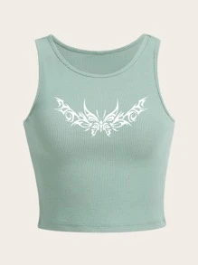 Top Sans Manches Imprimé Papillon Côtelé
