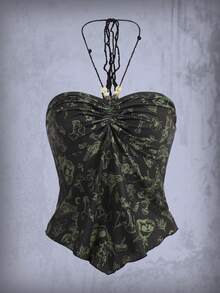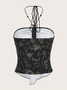 Goth Top Ras-Du-Cou Imprimé Papillon À Ruché