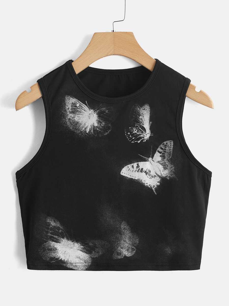 Top Sans Manches Imprimé Papillon