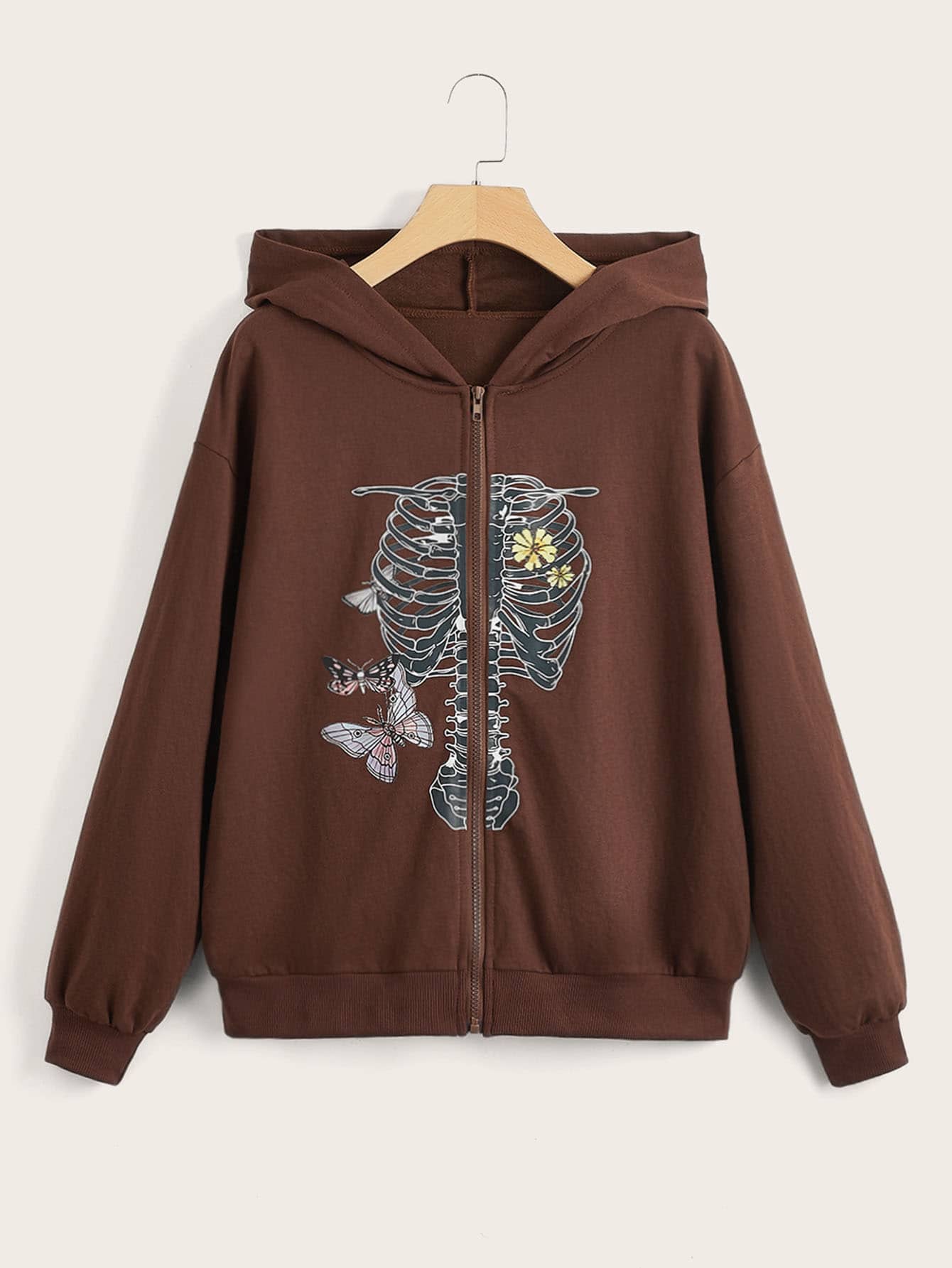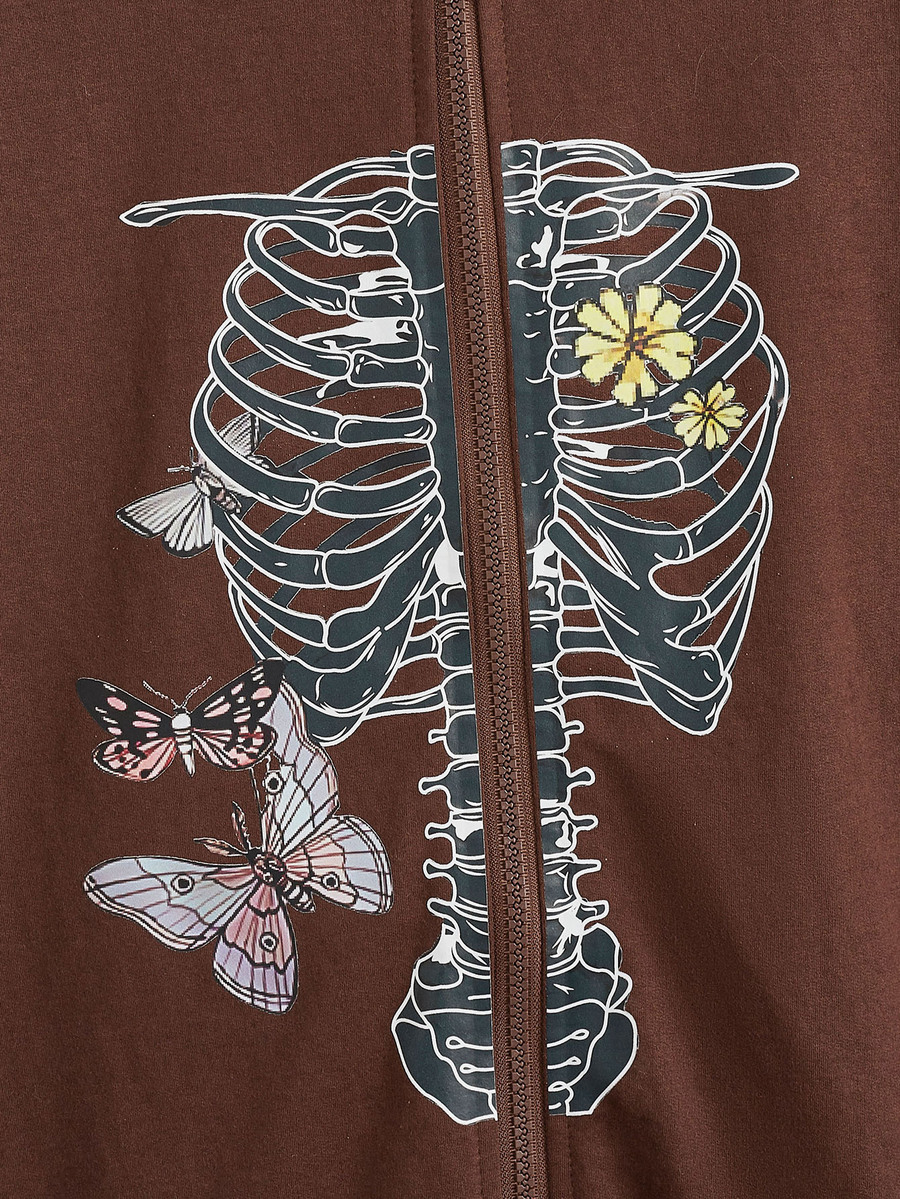 Sweat-shirt à capuche papillon et imprimé squelette