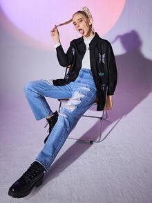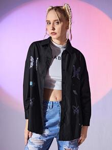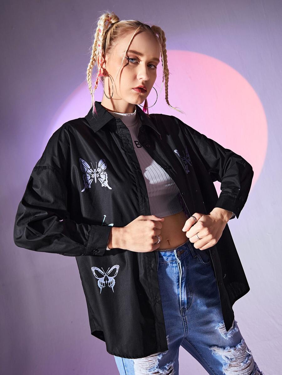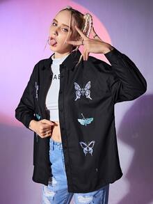 Chemisier papillon & à motif tête de mort à bouton