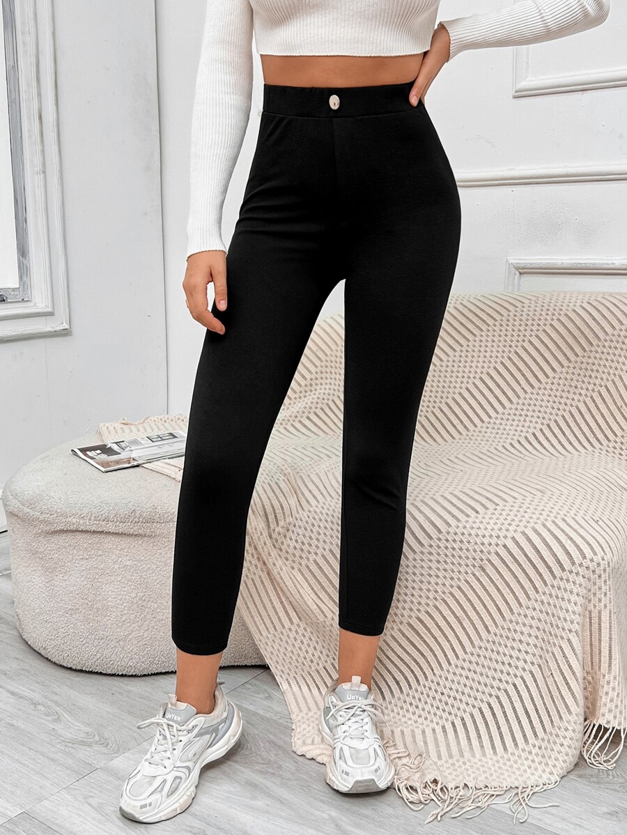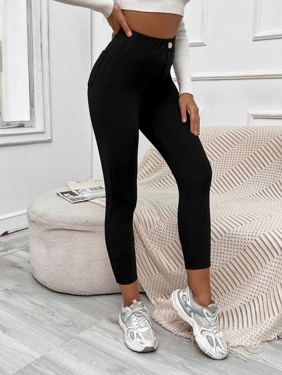 Pantalon Noir Skinny À Poches Patchées Et Détail De Bouton
