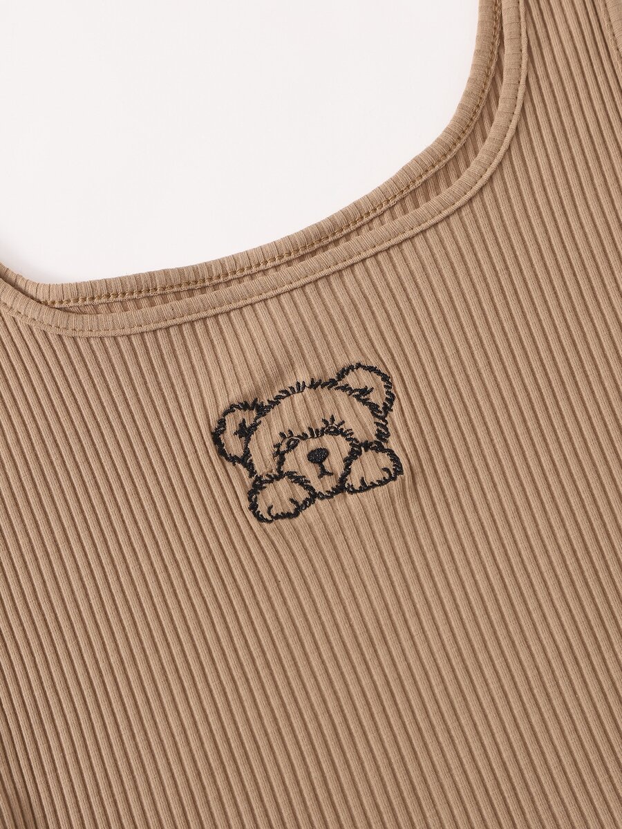 Top sans manches côtelé avec broderie